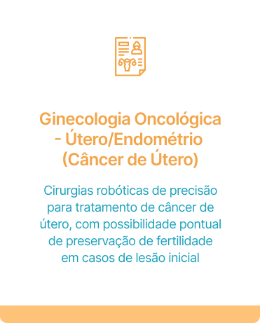 Especialista no tratamento de tumores complexos em útero, ovários, vagina e vulva. Utilizamos as técnicas mais avançadas de cirurgia robótica e videolaparoscópica para garantir máxima eficácia e mínimo impacto.